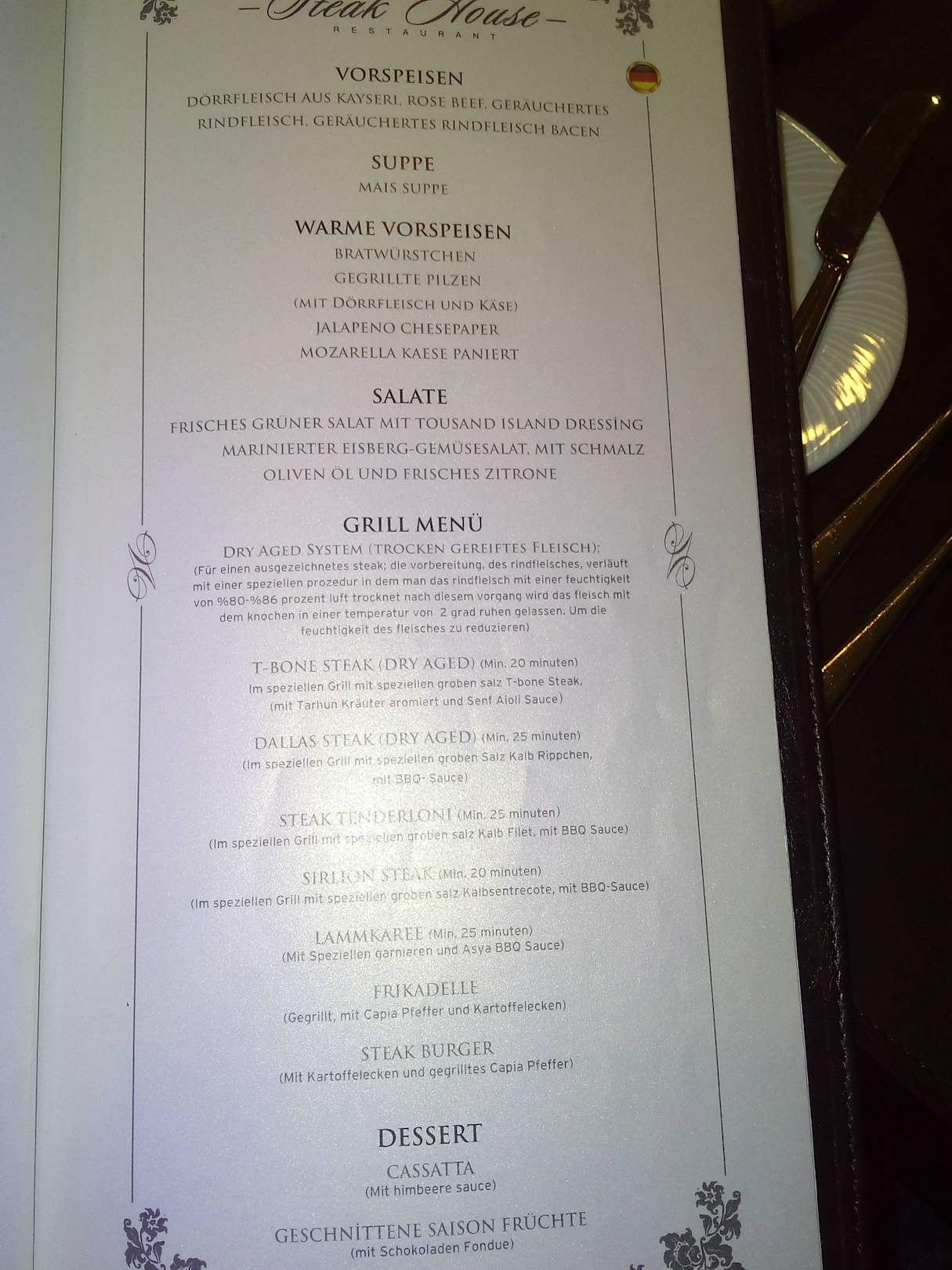 Steakhouse Karte