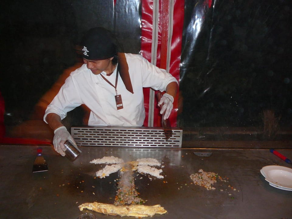 Tepanjaki RestaurantDer Koch beim Zaubern auf der Grillplatte