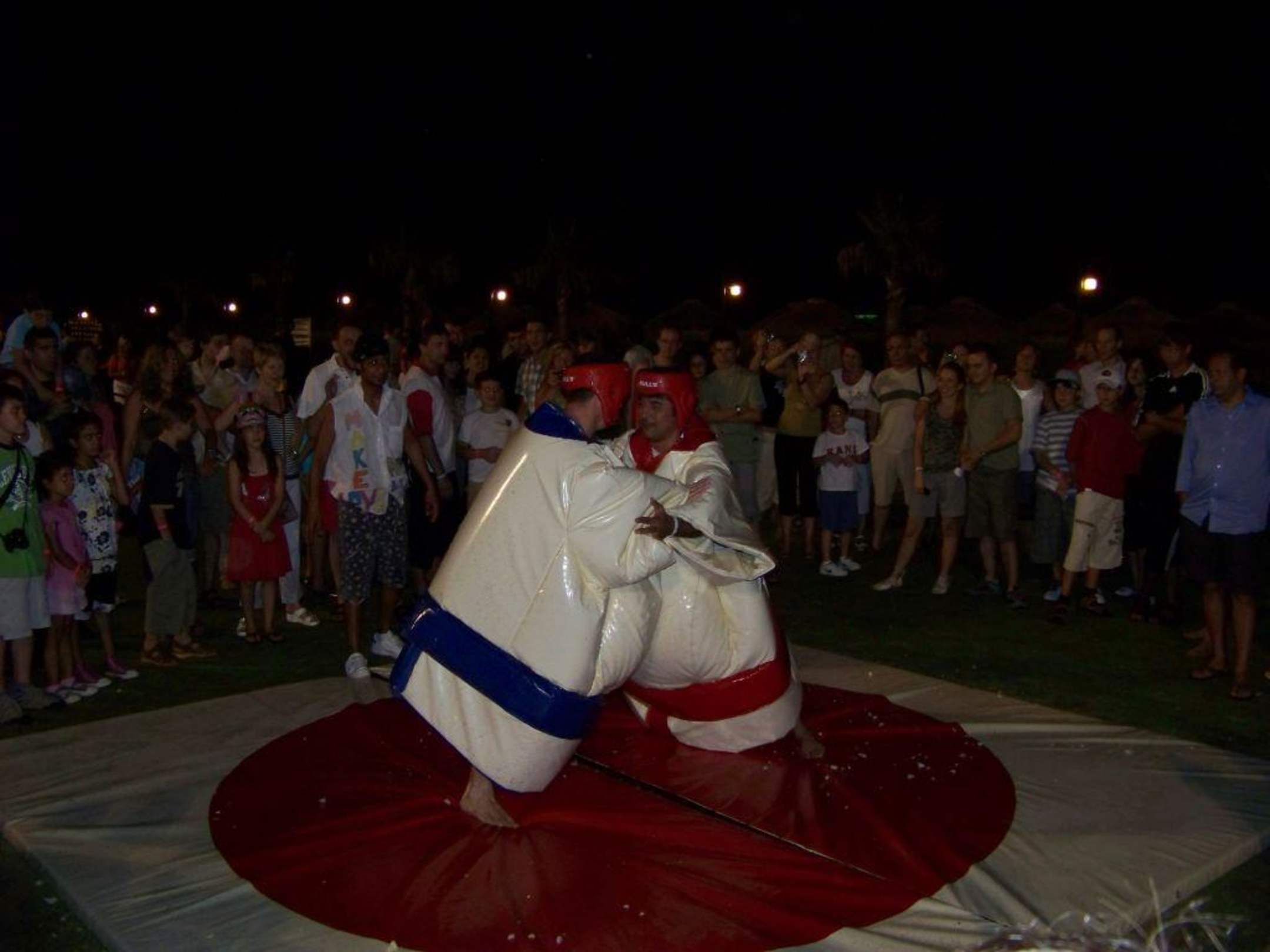 JahrmarktAuf dem Fußballplatz war ein Jahrmarkt aufgebaut, wo die Gäste in Sumo-Kostüme schlupfen konnten.