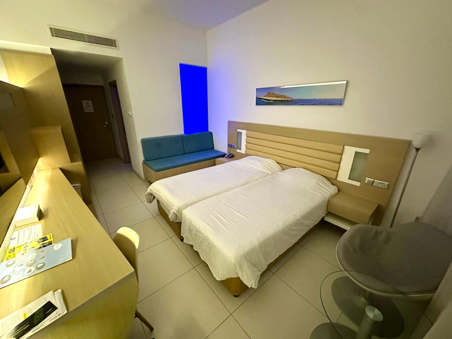 Doppelzimmer mit Meerblick, vom Fenszter aus in den Raum