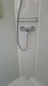 Dusche groß aber nicht sehr sauber