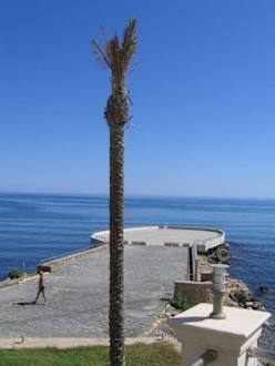 Blick von der Frühstücksterrasse zum Strandersatz