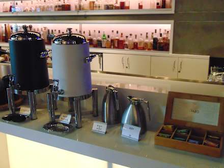 Morgens ist der Kaffee und Tee im lobbyseitigen Barbereich umsonst.