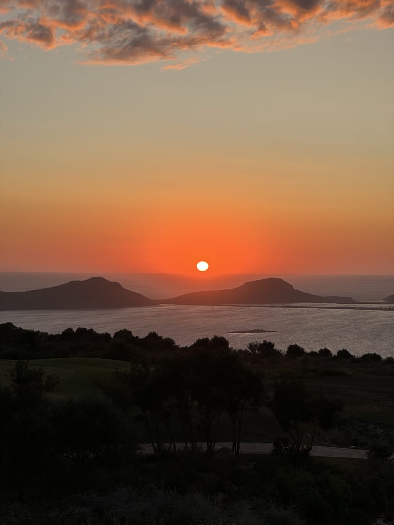 Ausblick vom Golf Restaurant auf dem Berg Richtung Sonnenuntergang