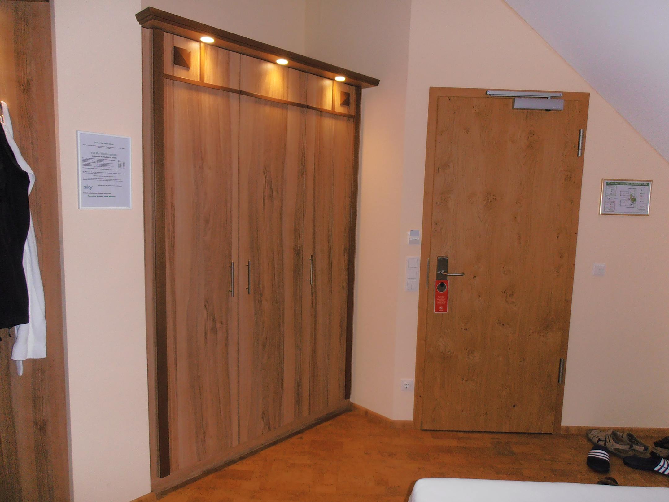 Eingangsbereich mit Blick auf den beleuchteten Kleiderschrank