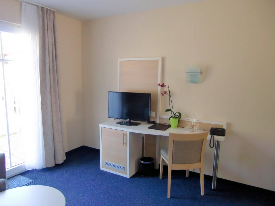 TV und Minibar im Wohnbereich