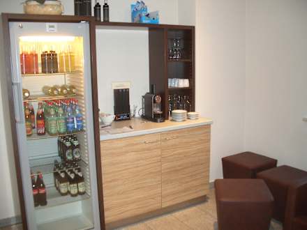 Getränkeschrank und Möglichkeiten kostenlos tagsüber Kaffee und Tee aufzubrühen