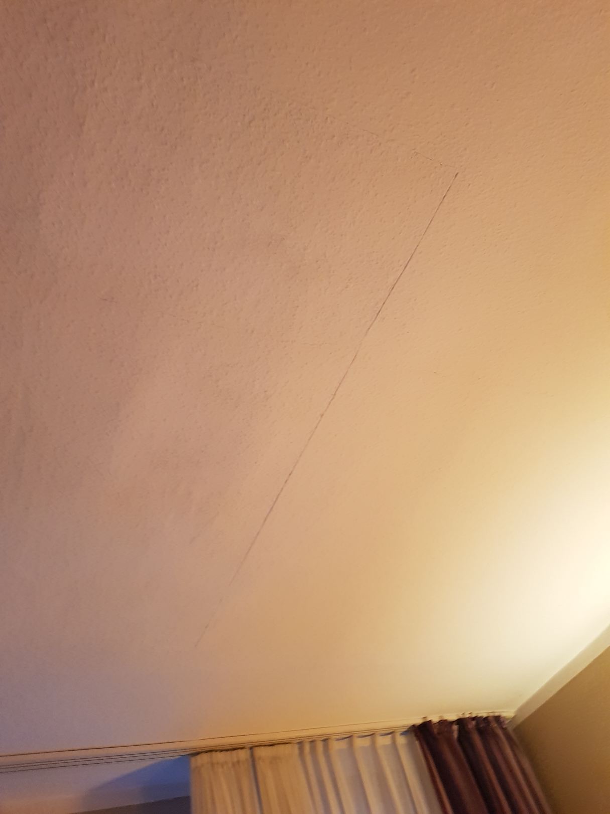 Decke mit loser Tapete und Wasserflecken