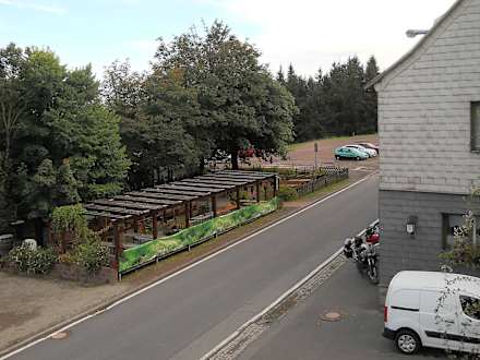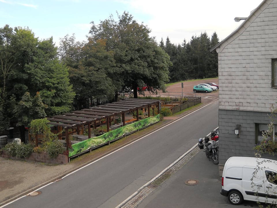 Biergarten, vom Gästehaus neben Parklätzen