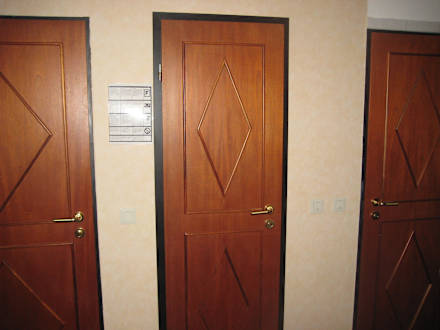 Drei Türen, Ausgang, Toilette und Dusche