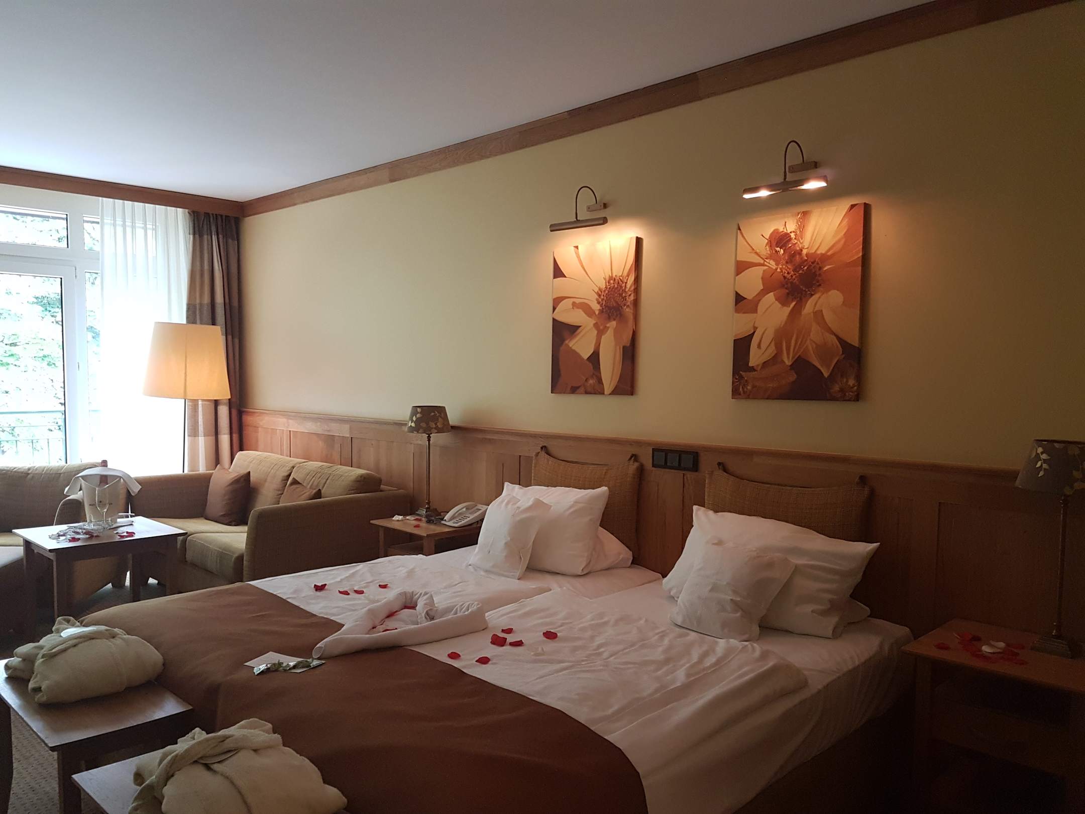 Zimmer mit Rosenblätter zum Hochzeitstag
