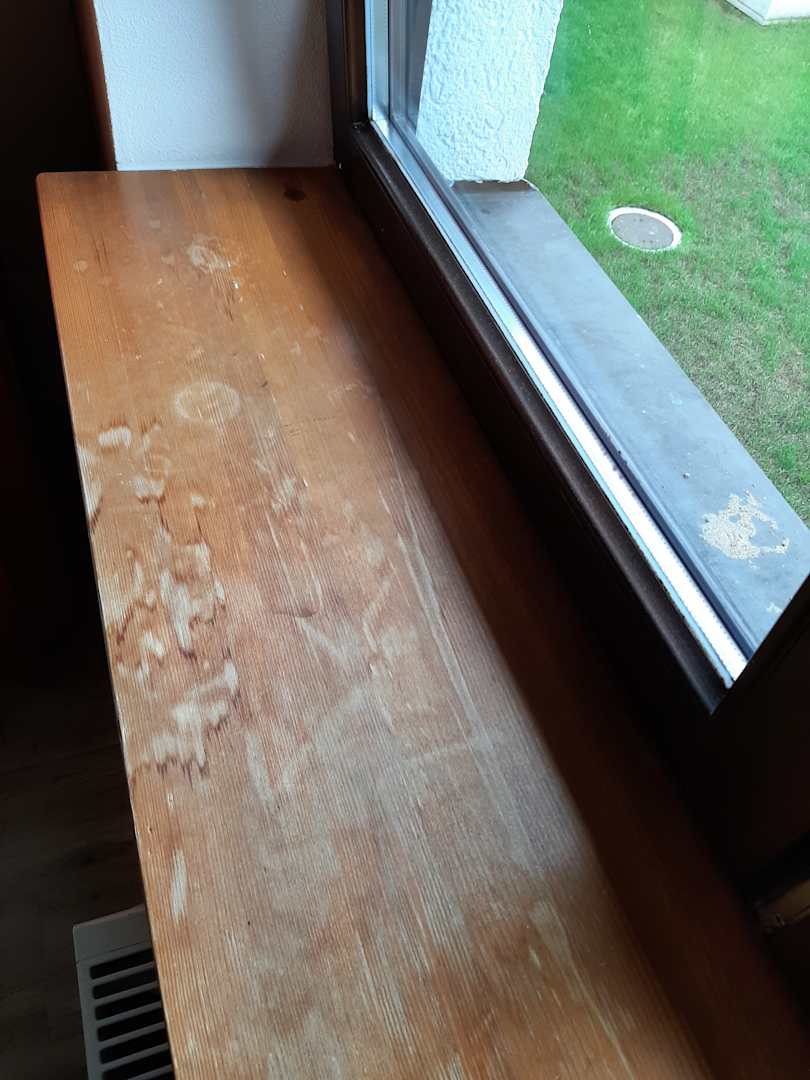 Fensterbank fleckig.