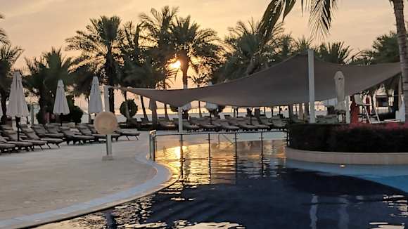 Sonnenuntergang am Family-Pool