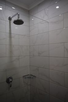 Dusche nur mit Rain-Shower von oben. Keine Handbrause.
