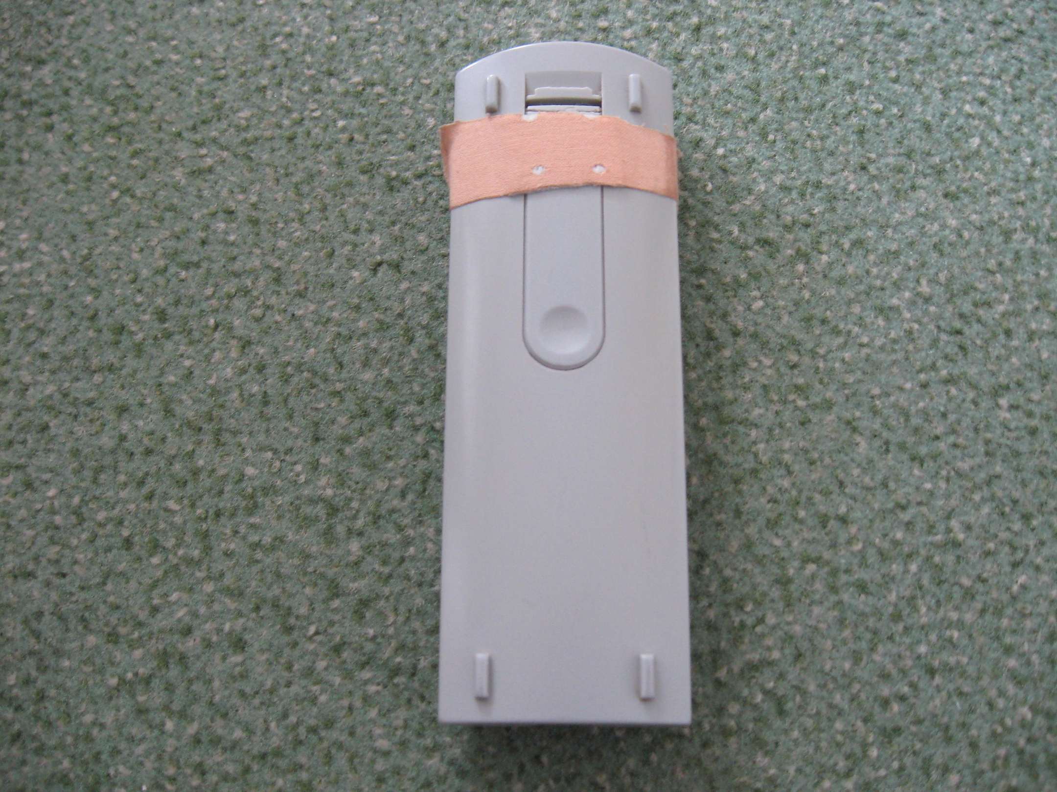 Fernbedienung des FernsehersMit Heftpflaster "reparierter" herausgebrochener Batterie-Gehäusedeckel