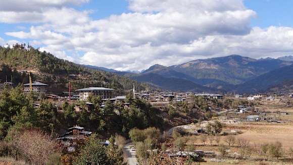 Blick vom Hotel nach Jakar und ins Bumthangtal