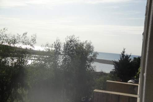 Вид из номера отеля на речку и море