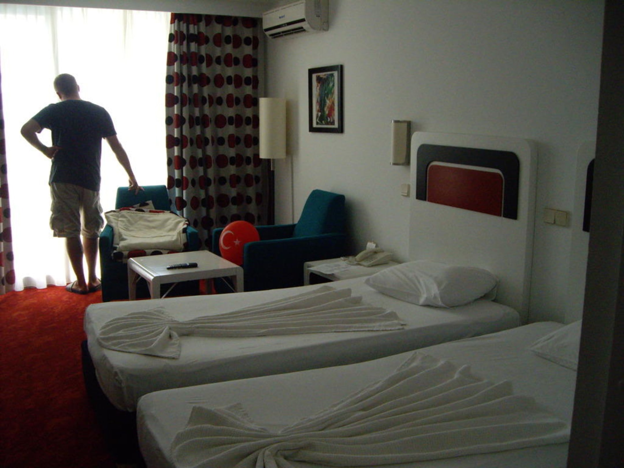 Zimmergröße ist optimal!Die Klimaanlage ist per Fernbedienung regulierbar und sorgt für ein optimales Klima im Zimmer.