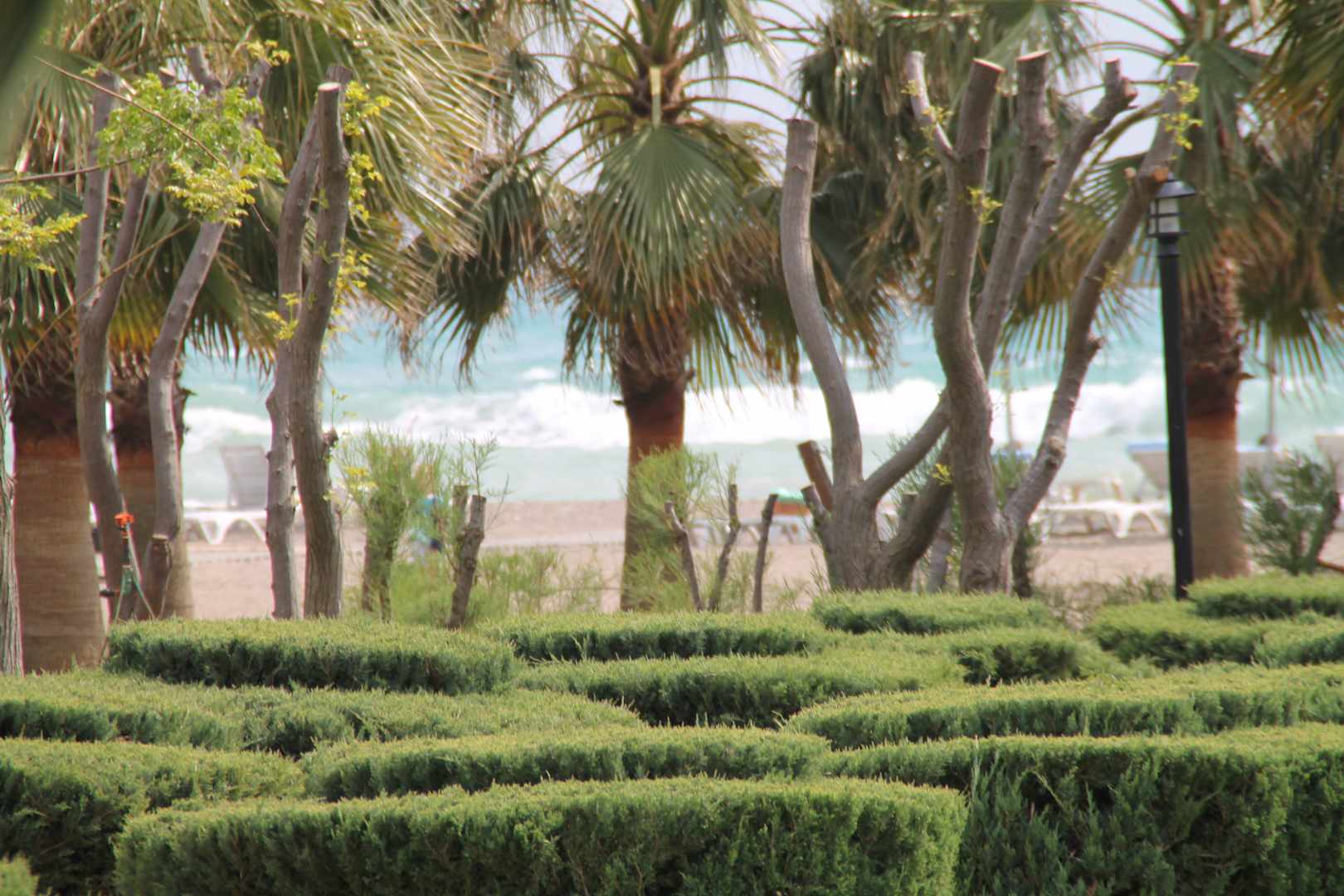 Blick vom Garten zum Meer