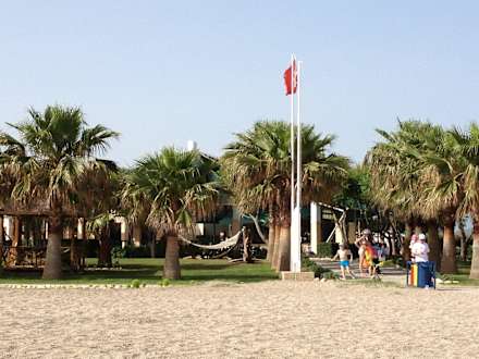 Blick vom Strand zum Hotel