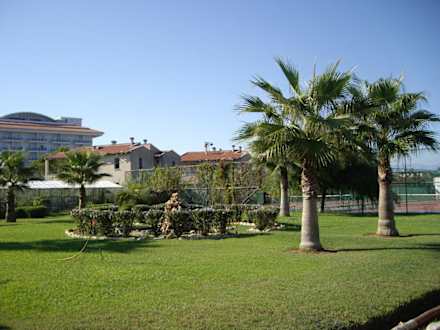 Vorplatz mit TennisplatzGepflegte Gartenanlage vor dem Hotel mit Blick auf das Nachbarhotel Sea World Resort & Spa.