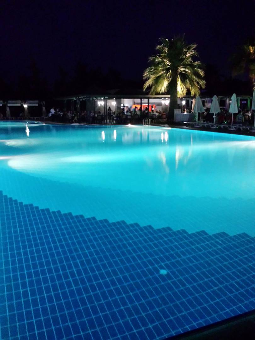 Poolanlage am Abend