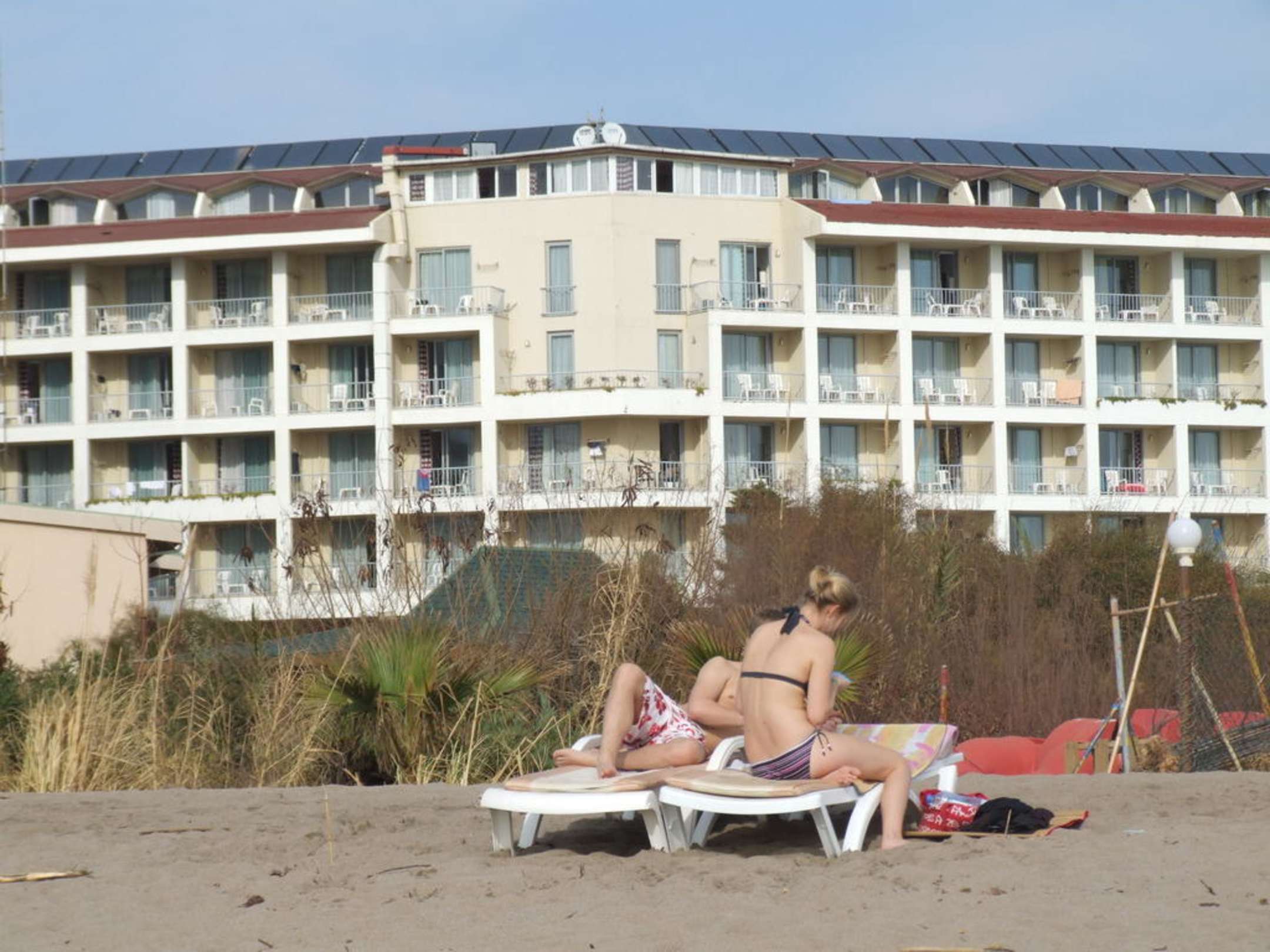 Blick vom Strand zum Hotel