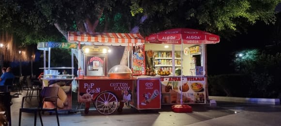 Stand mit Süßem am Pool