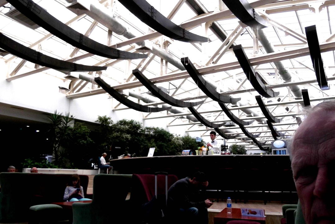 Am Abend sehr dunkel. Licht durch Glasdach
