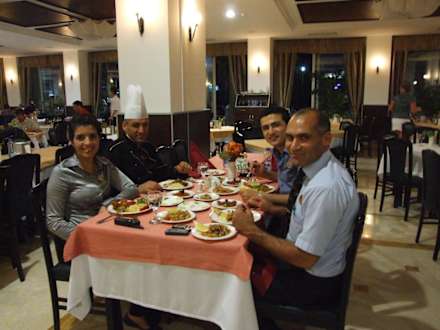 v.l. die Concierce, dahinter der Küchenchef, v.r. der Restaurantchef.