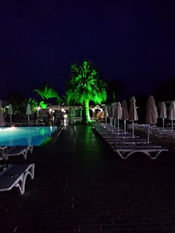 Poolanlage am Abend