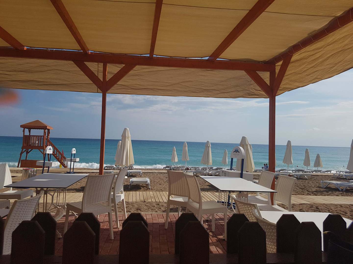 Der Blick von der Strandbar aufs Meer