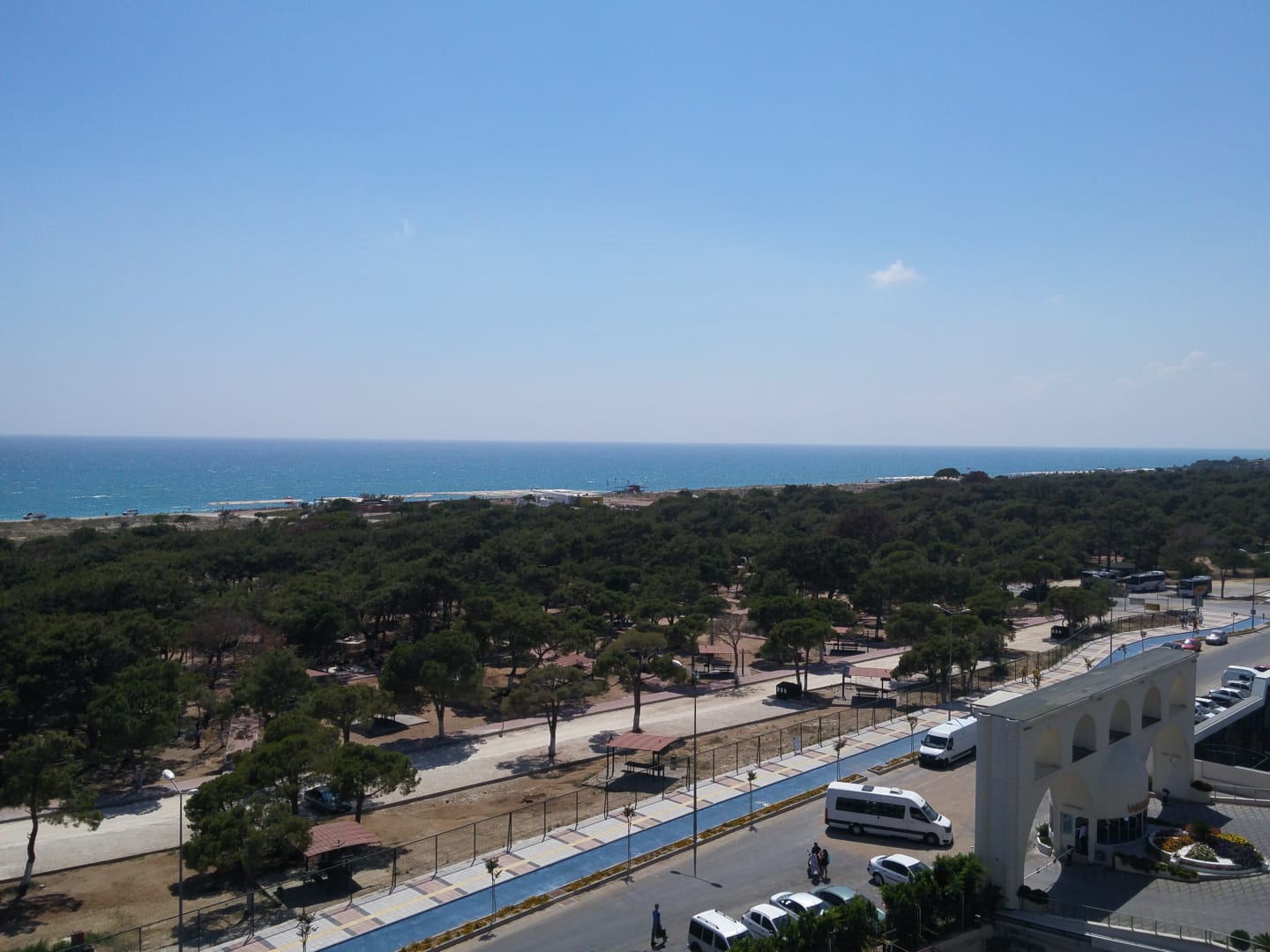 Blick vom 6. Stock Richtung Strand. Ca 300 Meter zu Fuß oder mit dem Shuttle