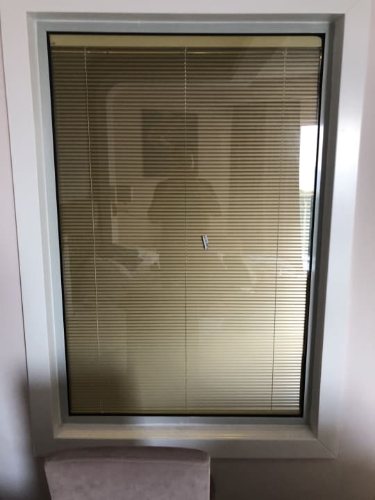 Man kann, wenn man auf dem Bett liegt durch die Jalousienen durchgucken. Wir mussten da unser Gepäckstück vorstellen. Wenn jemand auf dem Pott ist, will er nicht unbedingt gestört werden...