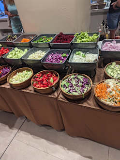 Große Auswahl an alle Gerichten, wiederholt sich natürlich. Probleme mit der Wärme hatten wir nicht