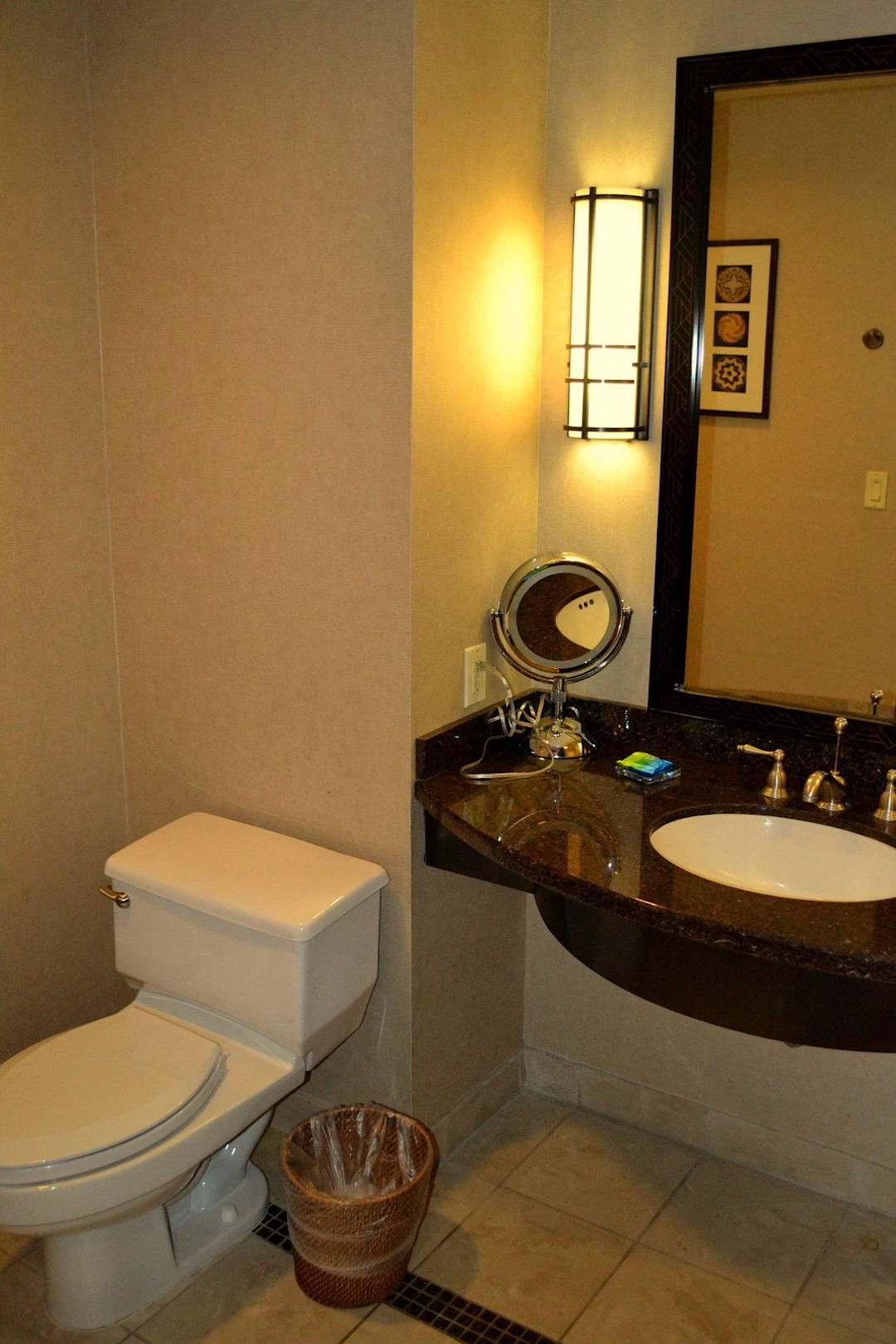 Blick ins schön designte Bad mit Kosmetikspiegel