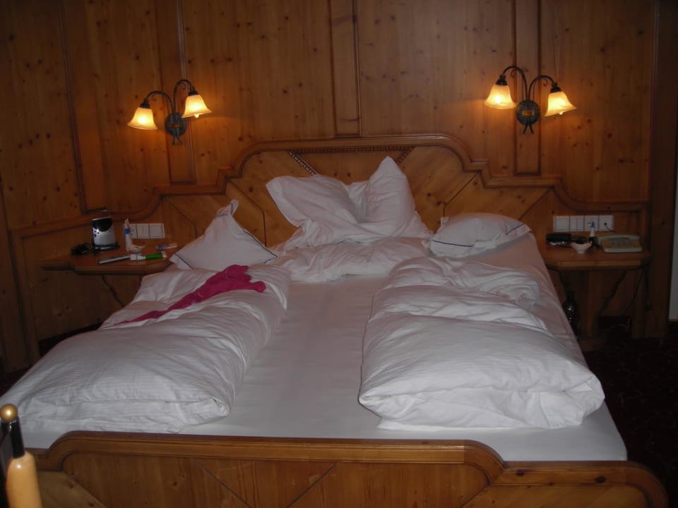 Teil unserer gemütlichen SuiteDas Bett liebevoll gemacht und die Schlafanzüge kunstvoll gefaltet...