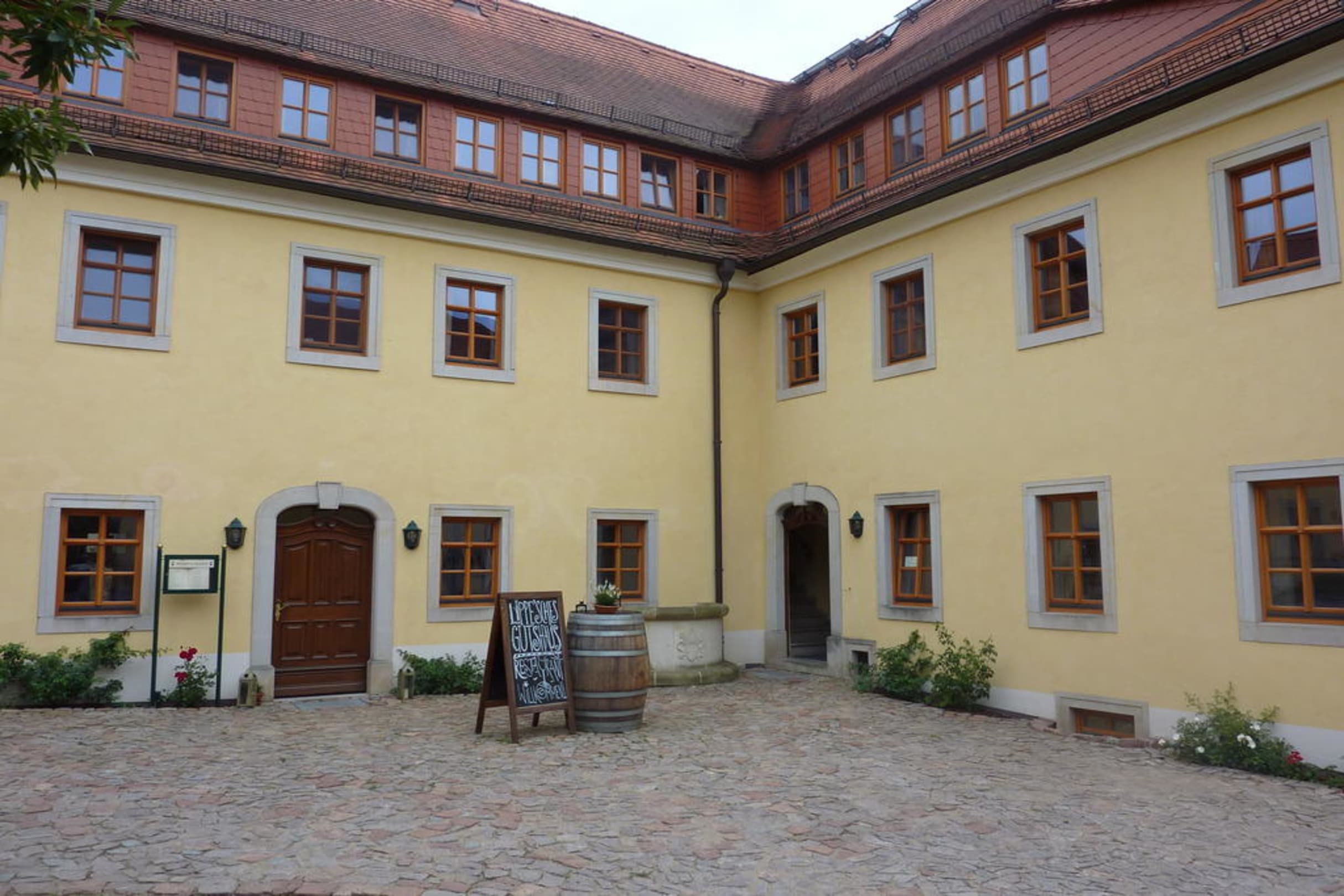 Vom Innenhof hat man Zugang zum Weingut und der Pension
