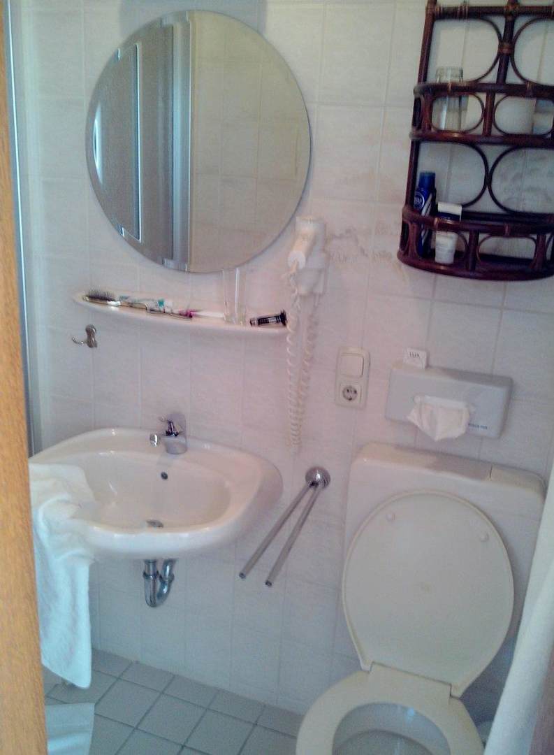 Das Bad mit WC, Dusche und Waschbecken