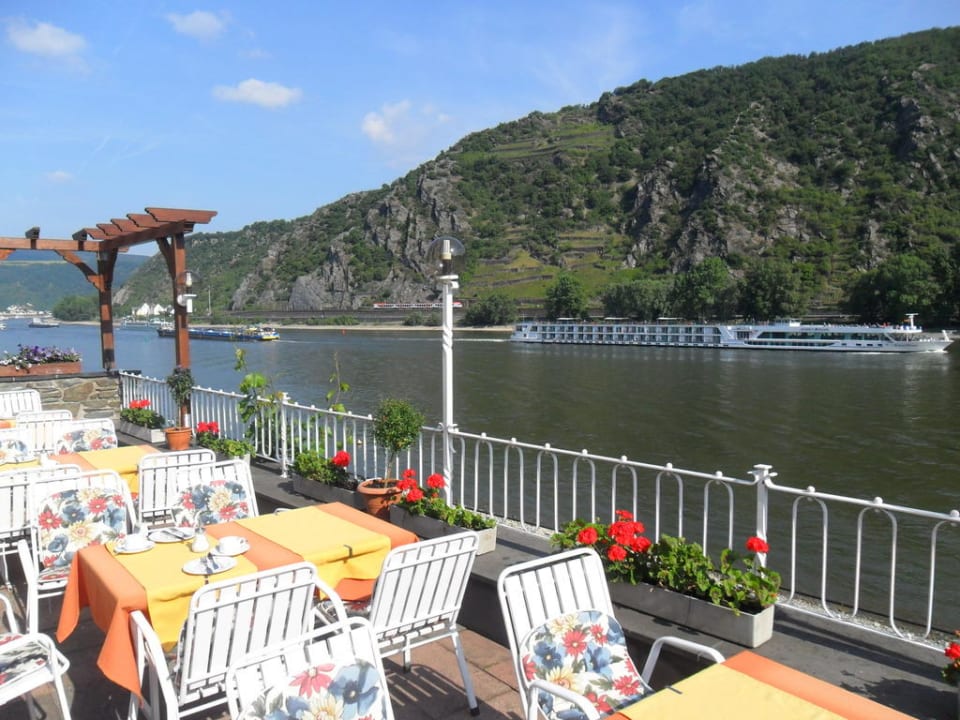 Blick von der Hotelterasse rheinabwärts