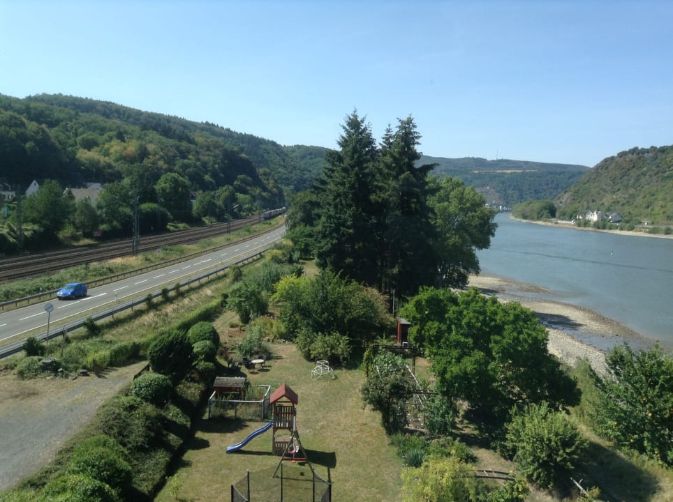 Ausblick v. 1. Schlafzimmer auf die B9 und die Zuggleise