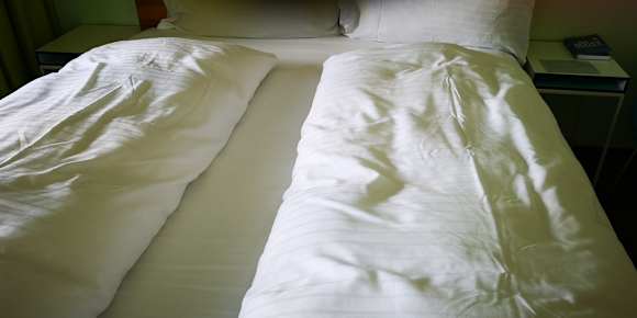 Betten wie sie bezogen sind beim Eintreffen