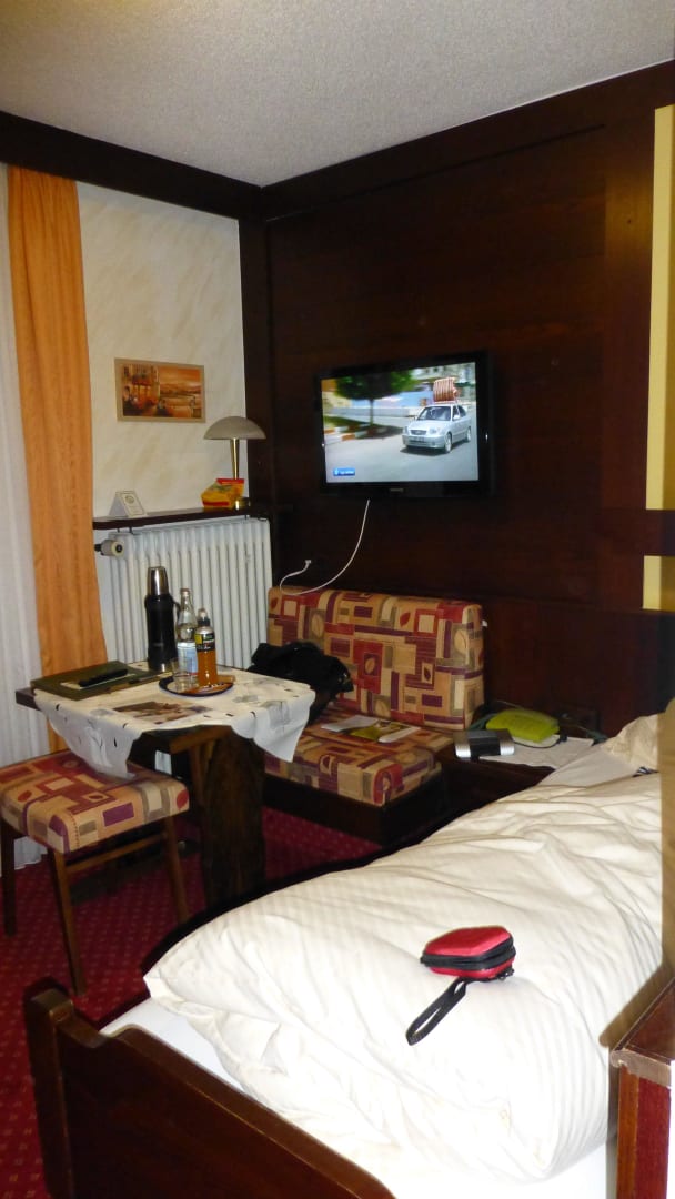 Einzelzimmer mit Balkon und großem TV und WLAN