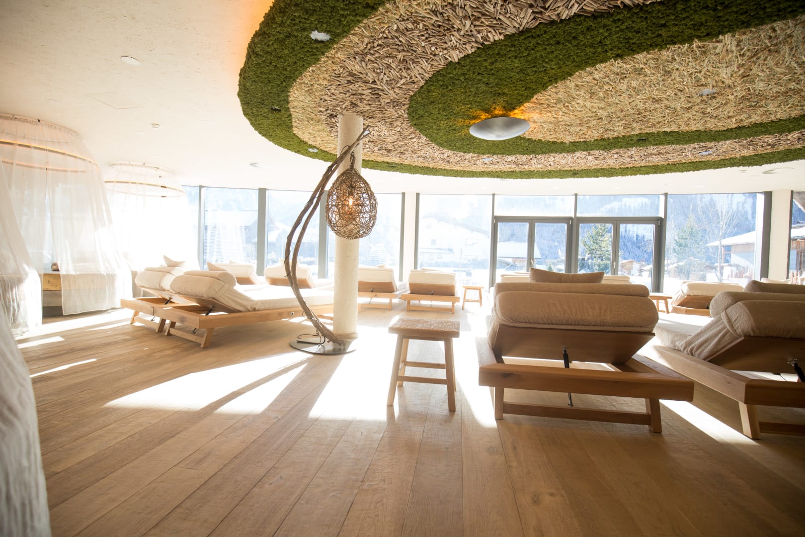 Neuer Raum mit vielen Liegen und Kuschelnestern links