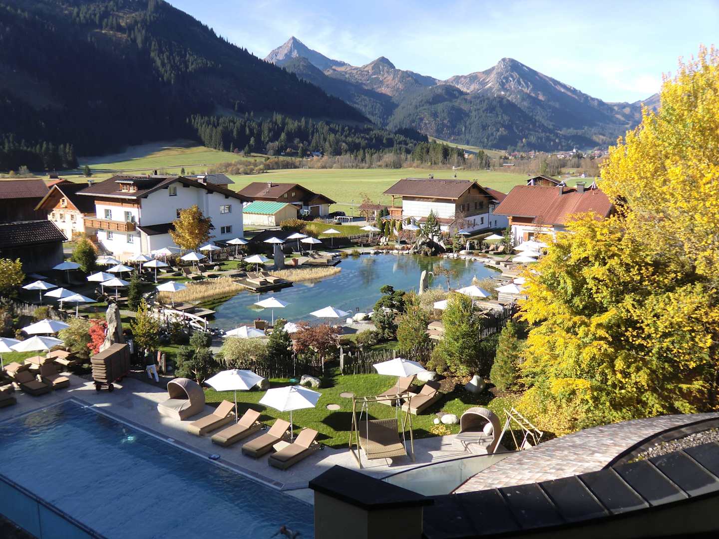 Ausblick über Pool und Bergsee