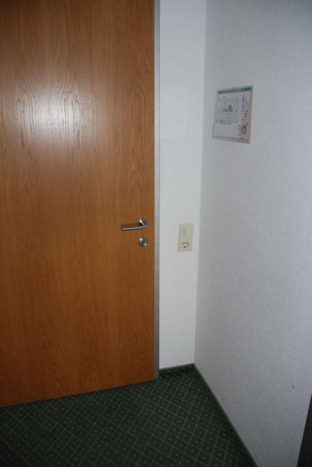 Schief montierter LichtschalterSchief montierter Lichtschalter, Plan des Gebäudes ein Blatt Papier, das an der Wand hängt.