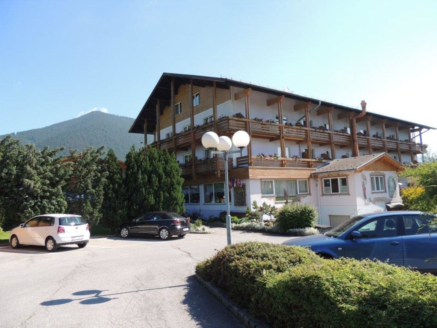 Hotelansicht vom Parkplatz aus