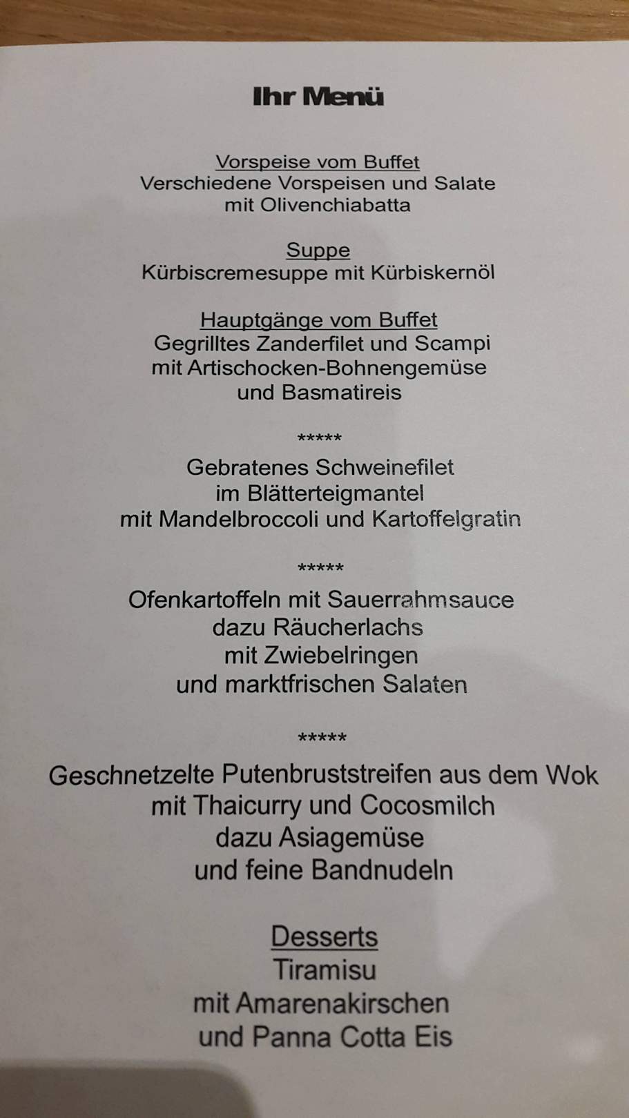 Menü am zweiten Abend