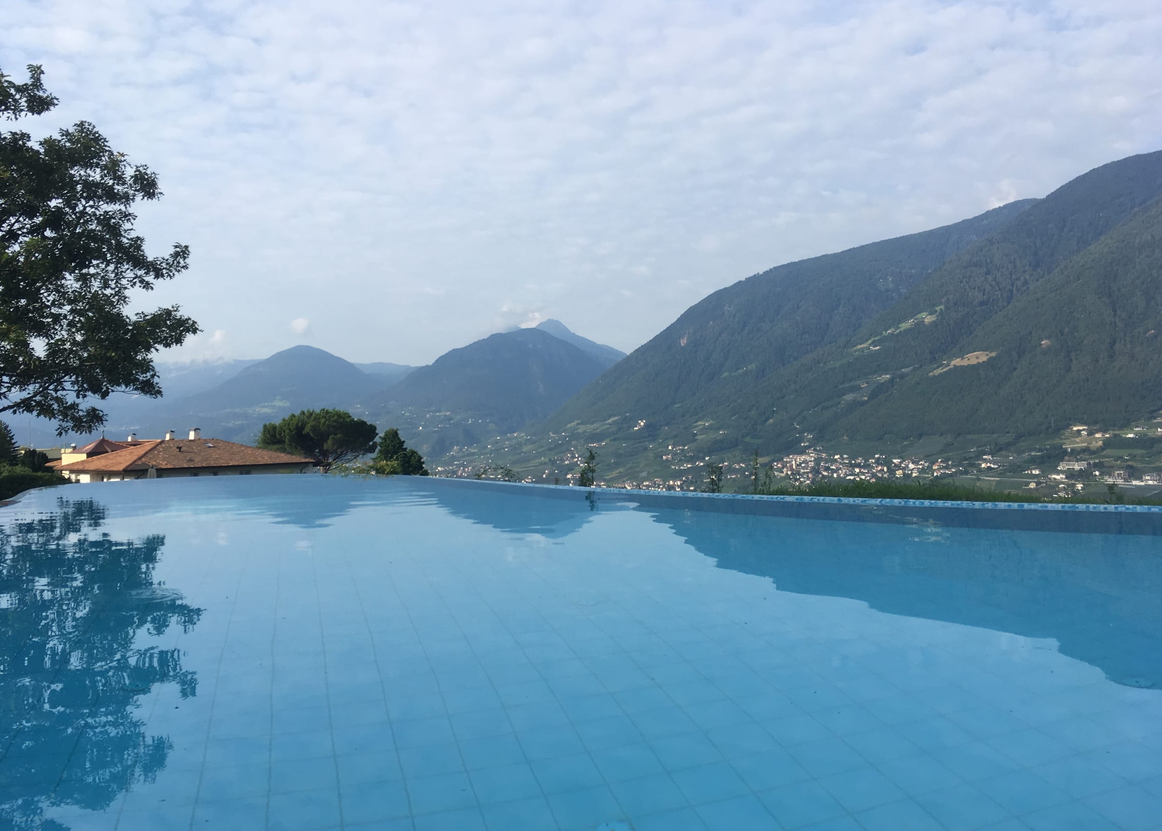 Infinity-Außenpool mit Blick auf Meran und das Etschtal