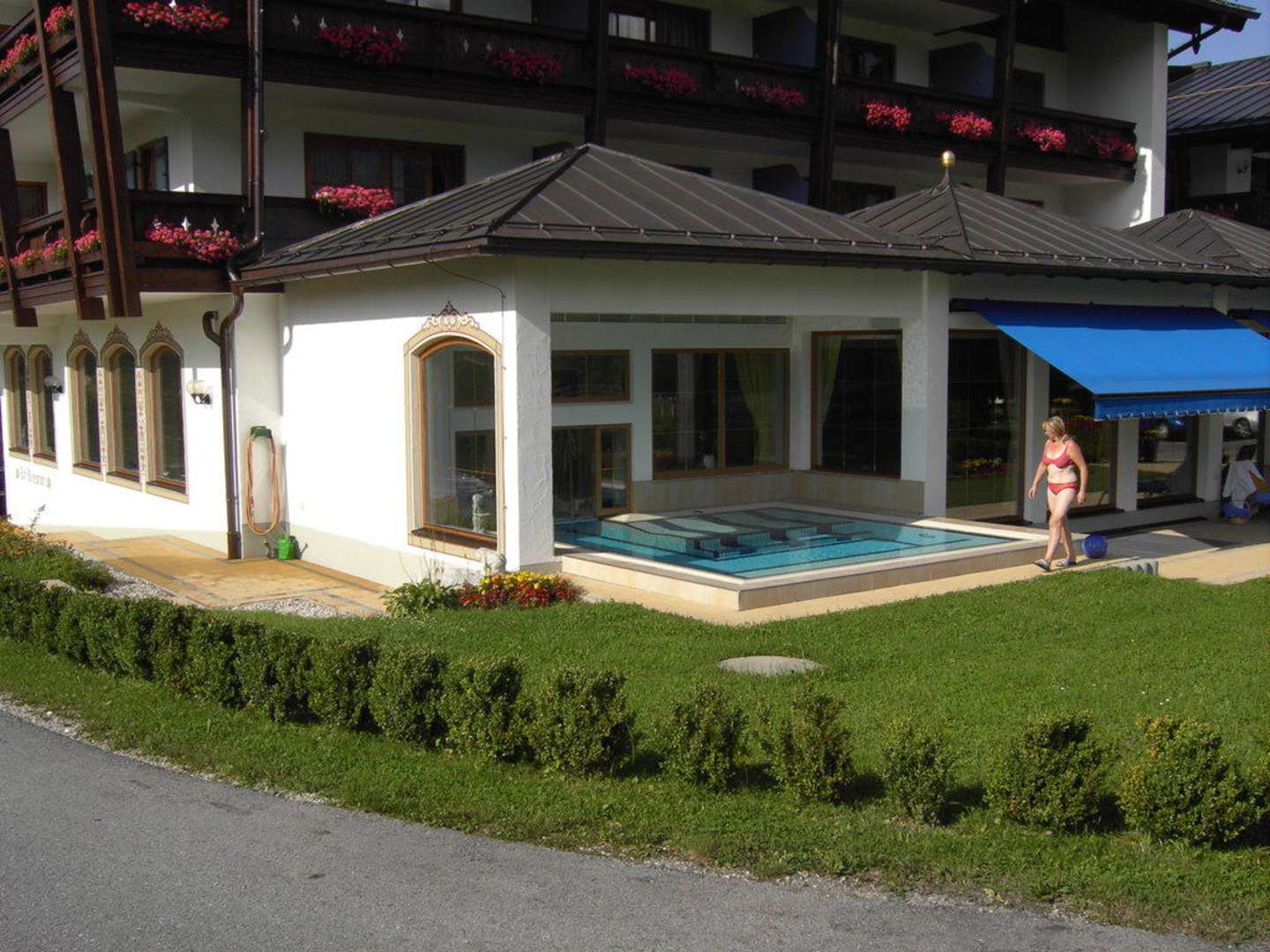 Beheizter Whirlpool mit Zulauf ins Innere.